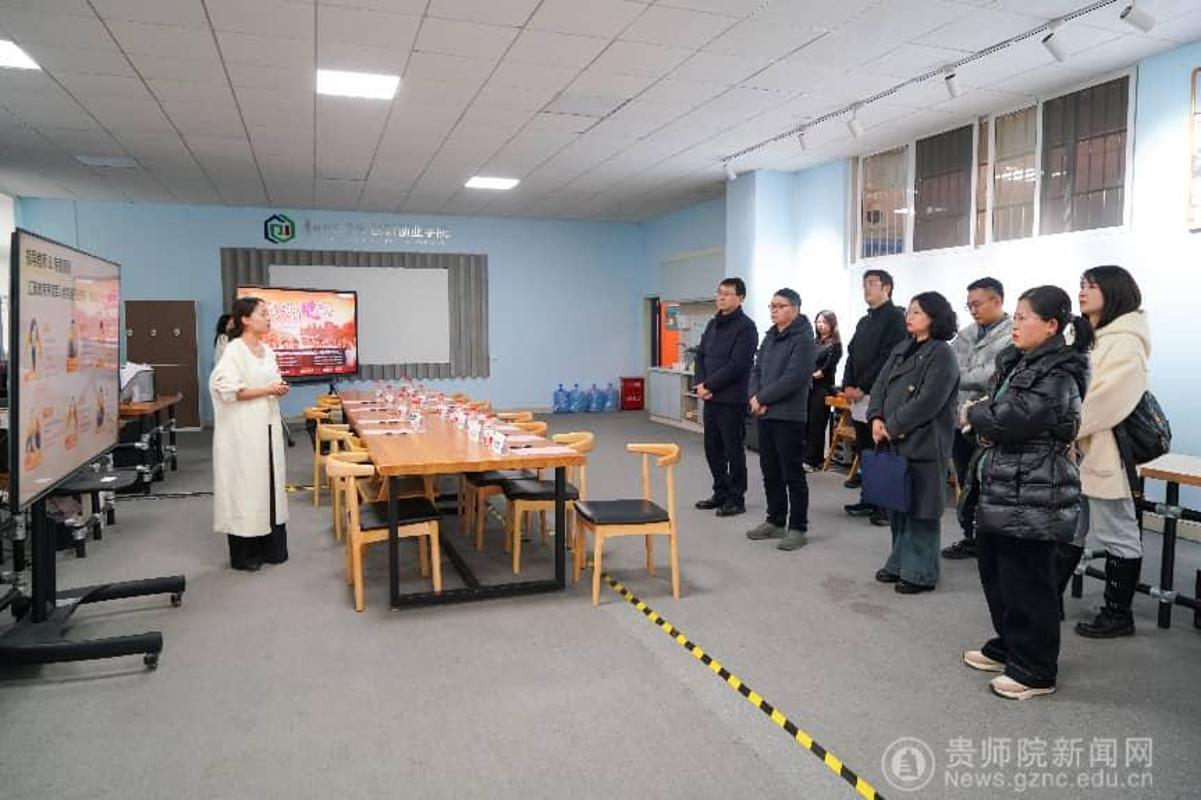 调研期间,张来一行先行参观了我校创新创业学院,实地了解学院办学环境、功能布局及双创实践平台建设情况。座谈会上,潘运代表学校致欢迎辞并简要介绍我校发展历程、办学规模及近年来学校在创新创业教育领域的探索实践与整体成效。他指出,创新创业教育是培养高素质人才的重要载体,希望以此次调研交流为契机,深化两校在双创领域的合作联动,推动资源共享、优势互补,携手为贵州高质量发展培育更多优秀创新创业人才。